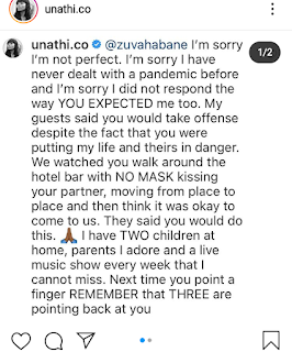 A woman tried to take a picture with Unathi at Maslow hotel and Unathi refused to take a picture with her. The reason for Unathi refusing her fan a picture is that the woman was not wearing a Mask at the time.